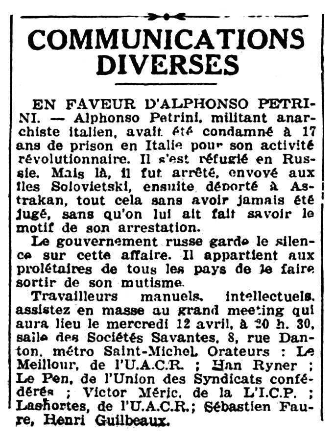 l'11 d'abril de 1933 - Míting per Petrini:
