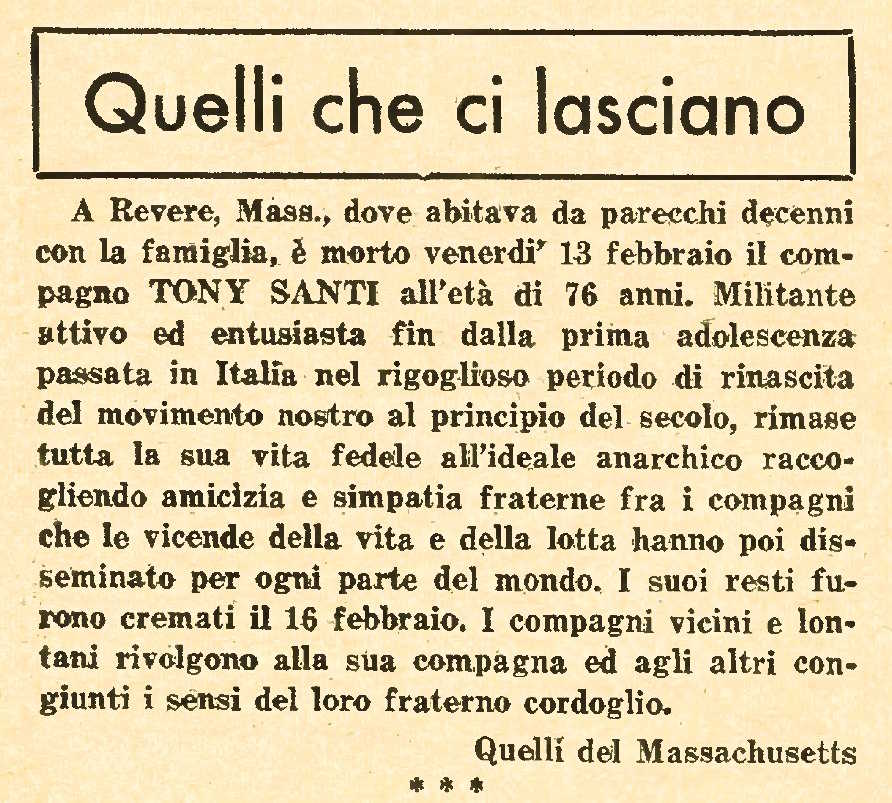 Occitània). Amadeu Sinca Vendrell (1911-1989) *** - Simón Tapia Colman: El 13 de febrer de 1993 mor a la Ciutat de Mèxic (Mèxic) el músic i compositor anarquista Simón Tapia Colman –també citat com Tapia-Colman. Havia nascut el 24 de març de 1906 a Aguarón (Saragossa, Aragó, Espanya). Sos pares es deien Benito Tapia, músic clarinetista, i Remedios Colman. Quan tenia sis anys ja tocava el violí en les festes del poble i amenitzava els descansos dels jornalers. Apadrinat pel periodista i compositor de sarsueles Juan José Lorente Millán, aconseguí una beca de la Diputació de Saragossa per estudiar música a l'Escola Municipal de Música. Quan tenia 11 anys ja feia concerts al teatre Parisiana de Saragossa, amb obres de Paganini i Sarasate. Instal·lat a Madrid, estudià amb Julio Francés, concertino de l'Orquestra Simfònica madrilenya, i amb Conrado del Campo i Francisco Calés al Real Conservatori. Novament becat, marxà a París, on estudià a partir de 1924 en la càtedra de composició de Vicent d'Indy. En tornà creà una orquestra i el «Quartet de Corda Colman» i fou membre de l'orquestra del teatre Apolo de Madrid. Quan esclatà la guerra ja pertanyia al moviment llibertari. A finals de 1936 fou nomenat instructor de Tir a les casernes Fermín Salvochea de Barcelona per formar les columnes de la Confederació Nacional del Treball (CNT). El gener de 1937 ingressà, com a integrant del Grup Hispània, en la Federació barcelonesa de la Federació Anarquista Ibèrica (FAI). El juliol de 1937 assistí a València al Ple Peninsular de la FAI en representació del Comitè Regional de Catalunya. En acabar la guerra passà els Pirineus i acabà al camp de concentració de Sant Cebrià, del qual fugí; capturat, fou internat al camp d'Agde. Aconseguí embarcar a l'«Ipanema» i el 7 de juliol de 1939 arribà al port de Veracruz, s'establint-se a Mèxic. Al país asteca desenvolupà una important tasca musical: professor i director del cor del Colegio Ruiz de Alarcón, director del Ballet Español d'Ana Maria, violinista de l'Orquestra Simfònica Nacional de Mèxic, programes radiofònics de comentaris musicals (Música de España), fundador i director del Cor de Mèxic, director del Cor de la Comissió Federal d'Electricitat, professor i director del Conservatori Nacional de Mèxic, catedràtic d'Història de la Música i d'Organologia, investigador musical de l'Institut Nacional de Belles Arts, catedràtic d'Estètica de la Universitat Iberoamericana, membre de l'Institut Mexicà de Ciències i d'Humanitats, etc. Nacionalitzat mexicà, es casà amb Esperanza Alcázar, filla del cardiòleg del president Lázaro Cárdenas del Río, amb qui tingué vuit fills, tots vinculats amb la música, especialment sa filla Silvia Tapia (Prisma). En 1956 fou el primer representant de Mèxic al qual la BBC londinenca li estrenà una simfonia amb l'Orquestra de Manchester, dirigida aleshores per Hugo Ringold. Aquest mateix any rebé el premi de la Unió de Cronistes de Teatre i Música de Mèxic. En 1989, mig segle després del seu exili, viatjà a Saragossa, convidat per la directora del Conservatori de la ciutat, i rebé un homenatge a la Sala de Música del Palau de Sástago. Fou autor de més de dues-centes obres, algunes força conegudes (Una noche en Marruecos, Leyenda gitana, Estampa de Iberia, Sísifo, etc.), que s'han publicat en forma de llibre-disc sota el títol Obra sinfónica completa de Simón Tapia-Colman. També publicà centenar d'articles de crítica musical de diverses publicacions mexicanes. Ha estat enquadrat en l'anomenada «Generació Musical de 1927», al costat de Rodolfo Hallfter, Gustavo Pitaluga, Jesús Bal y Gay, Adolfo Salazar i Pilar Bayona, entre d'altres. Simón Tapia Colman va morir víctima d'un càncer, poc abans de concloure la seva òpera en tres actes Iguazú, el 13 de febrer de 1993 a la Ciutat de Mèxic (Mèxic). Fou l'últim compositor exiliat arran de la Guerra Civil espanyola que quedava a Mèxic. Simón Tapia Colman (1906-1993) *** Ricard