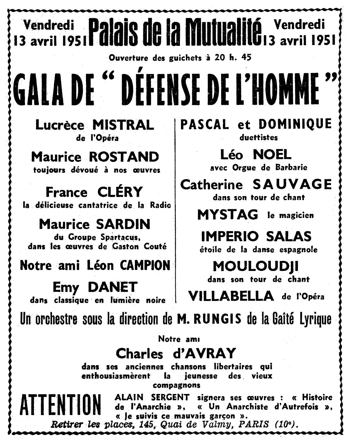 de l'Homme: El 13 d'abril de 1951 se celebra al Palais de la Mutualité de