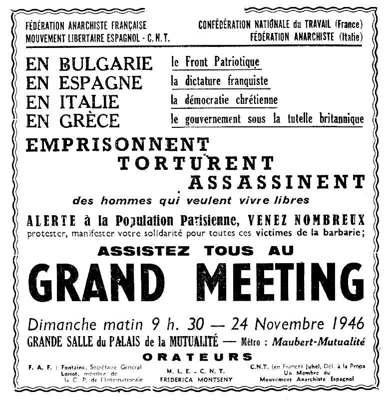 Libertaire del 22 de novembre de 1946 - Míting contra la