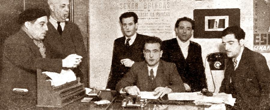 Alcón Selma, al centre assegut, amb altres companys del Comitè Econòmic de la Indústria de l'Espectacle (Barcelona, 1937) --- ---