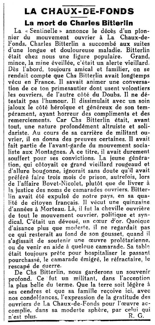 de Charles-Albert Bitterlin apareguda en el diari socialista de La
