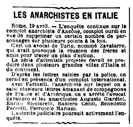 trobava en una llista francesa d'«anarquistes perillosos» (Umberto Ceccotti,