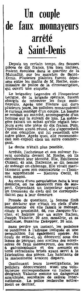 París, va ser detingut, juntament amb Emiliana Cuzzoli, sa companya