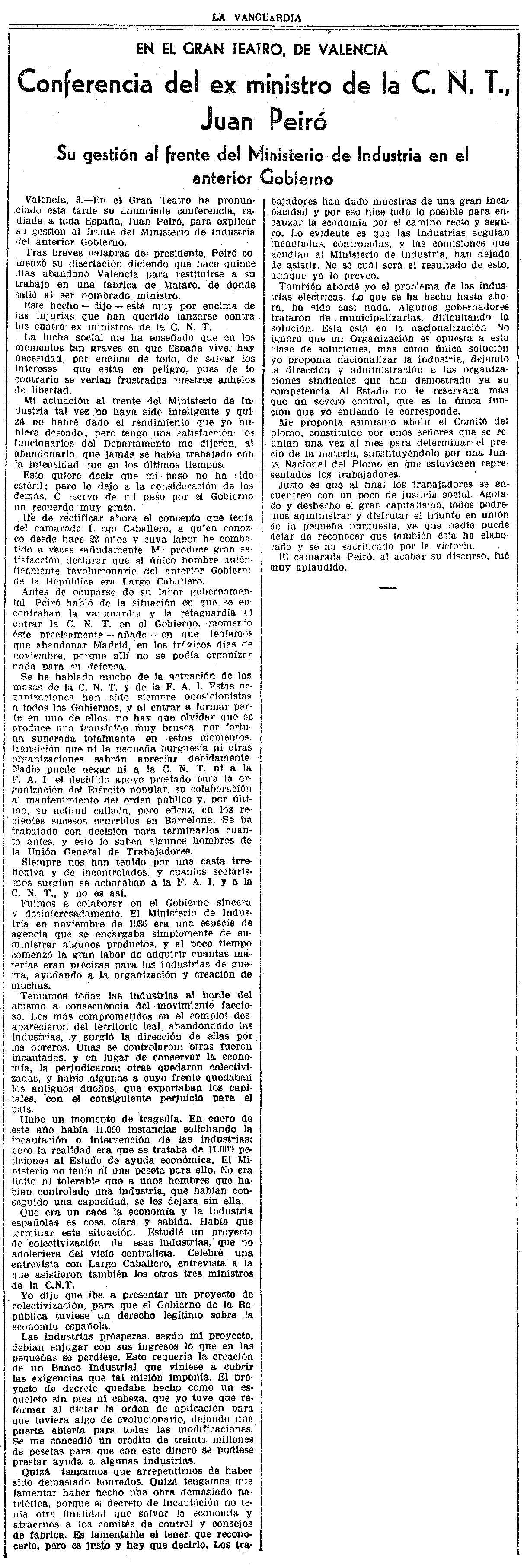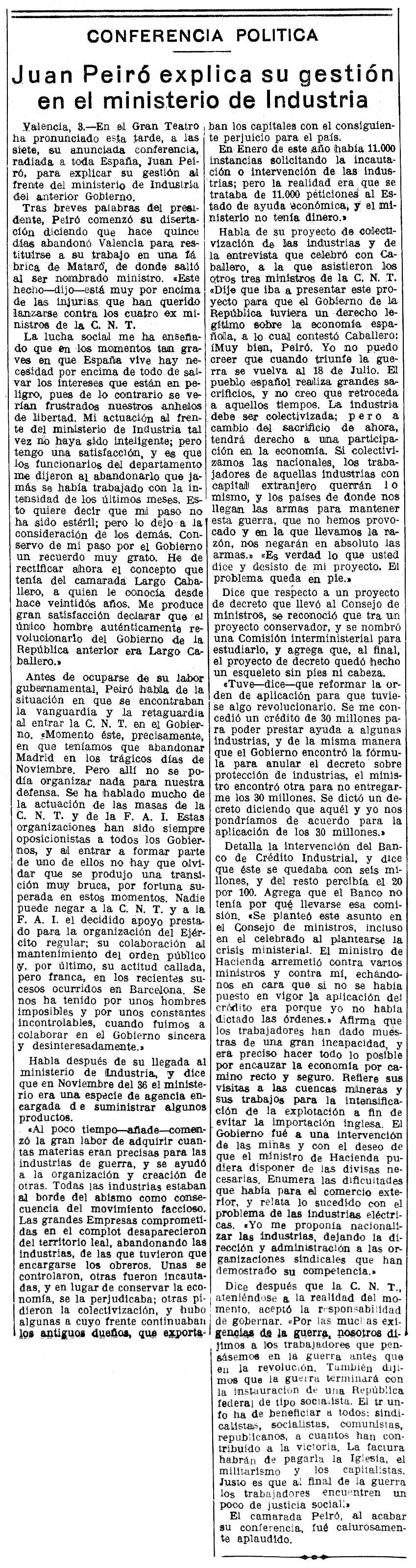 de 1937) El 3 de juny de 1937 l'anarcosindicalista Joan Peiró Belis