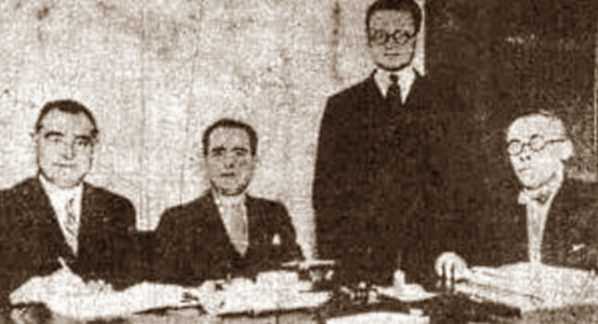 Components de la primera directiva de la CGT (1930). D'esquerra a dreta: José Negri, Luis Cerruti, Andrés Cabona i Manuel Fandiño (Alejandro Silvetti) ---