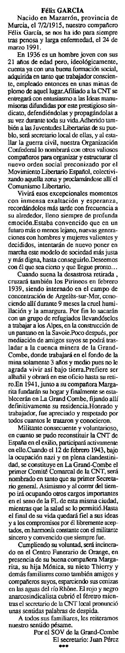 l'anarcosindicalista Félix García Muñoz. Sos pares es deien Félix García López,
