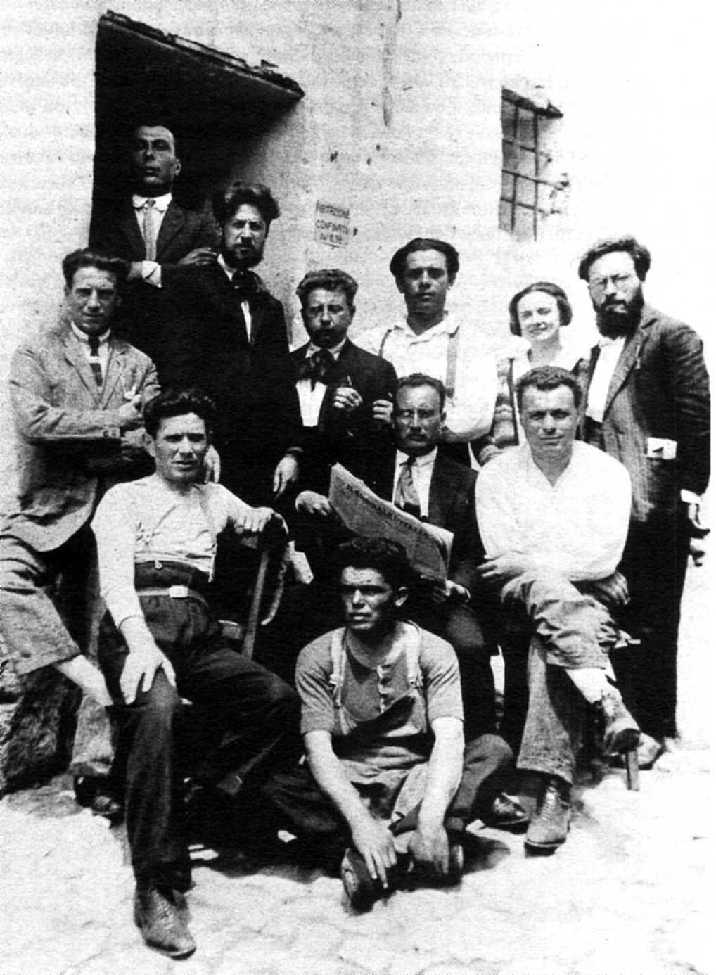 Gino Bibbi --- Gino Bibbi a l'illa d'Ustica (1927) --- Gino Bibbi (primer per la dreta dels asseguts) amb altres confinats --entre ells Giuseppe Tonini, Fioravante Meniconi, Melli Tarantola i Antonio Di Donato-- a l'illa d'Ustica (1927) ---