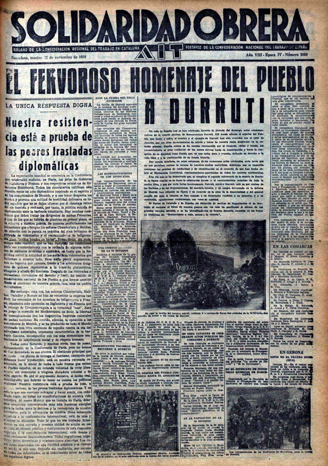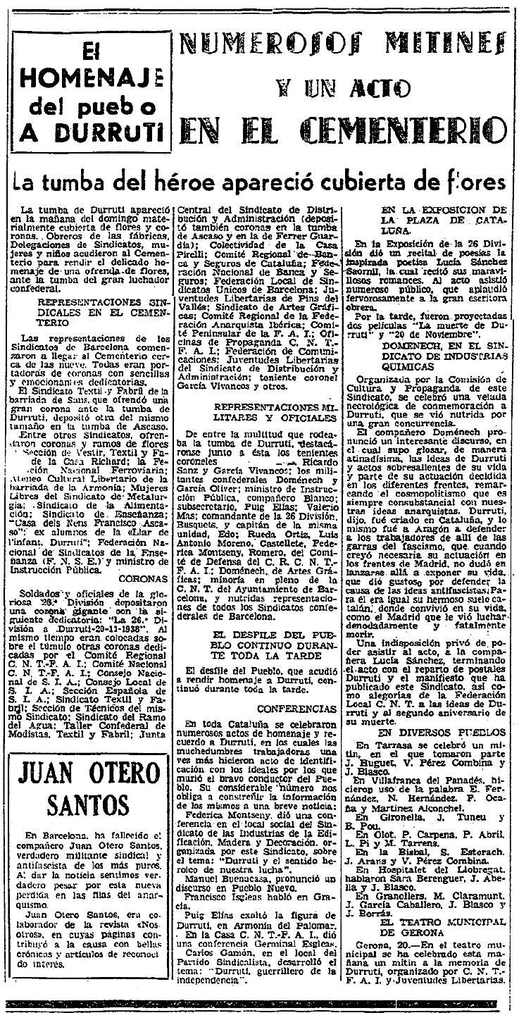 de l'acte publicada en el periòdic barceloní CNT del 22 de novembre de 1938 --- Nota