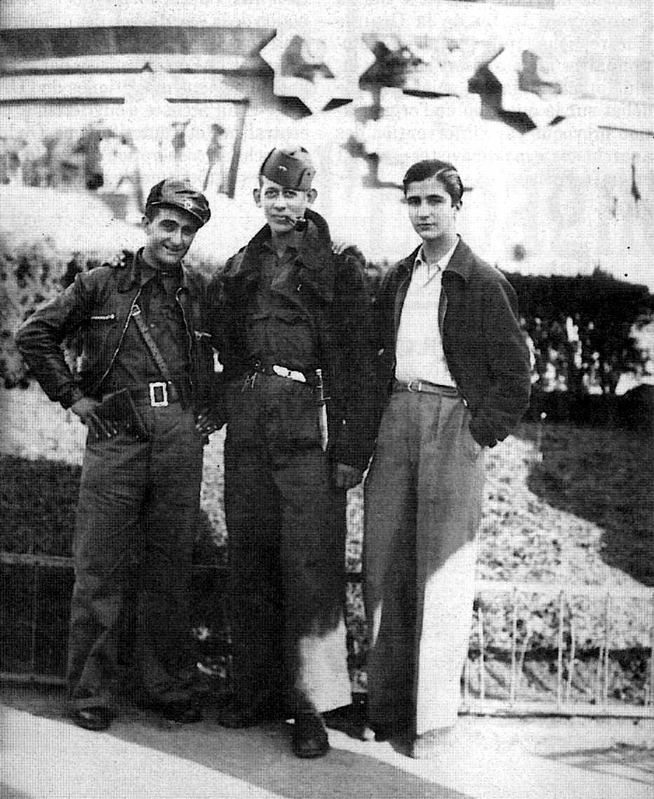 García a Barcelona (març de 1938) --- Léo Volin (al centre) amb un company francès (a la seva