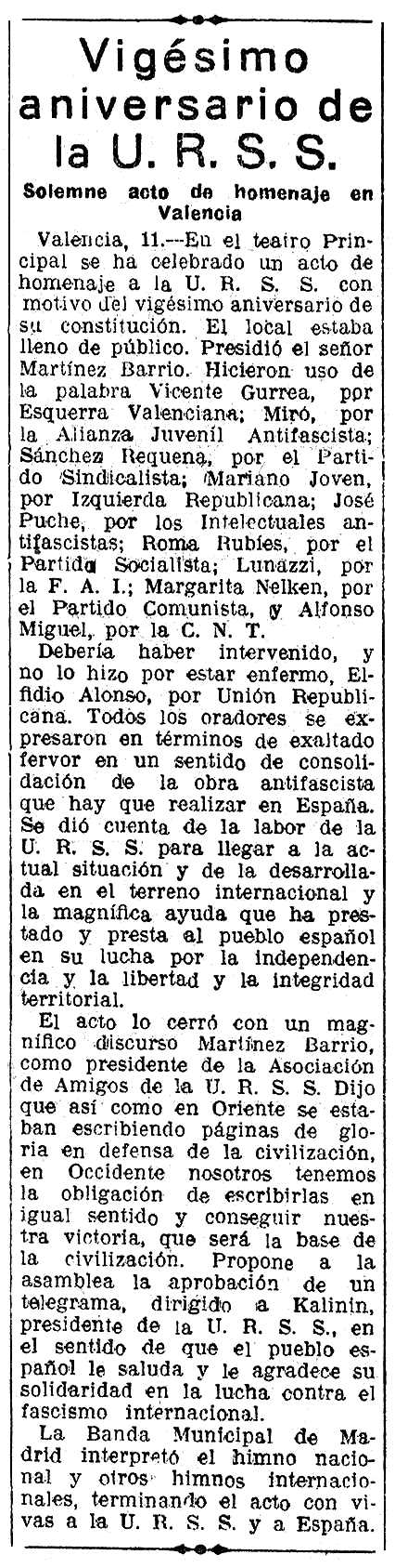de 1937 representà la FAI en un acte d'homenatge a l'URSS que se celebrà al