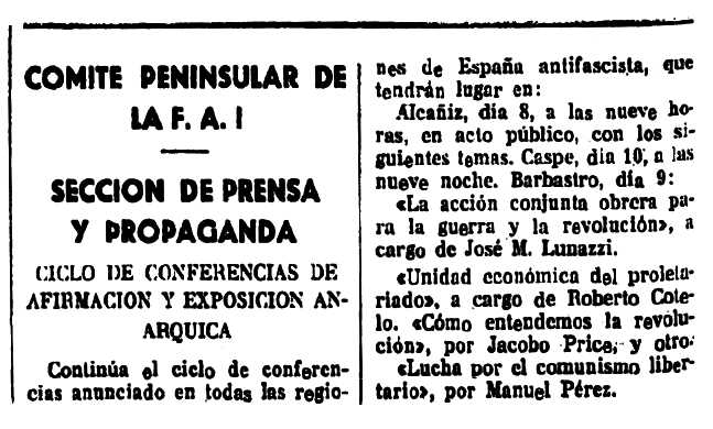 ser nomenat membre de la Comissió Econòmica del Comitè Peninsular de la FAI. També