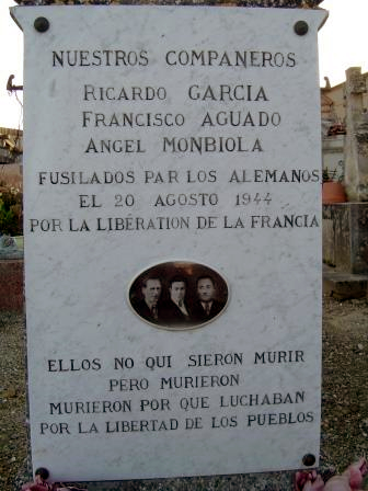 (Llenguadoc, Occitània), Ángel Mombiola Allué va ser afusellat el 20 d'agost de 1944 juntament amb altres