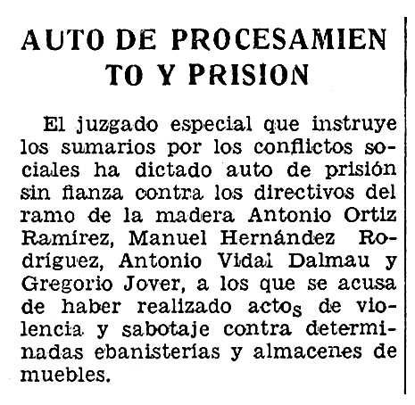 del processament d'Antoni Vidal Dalmau apareguda en el diari valencià Las Provincias del 17 de març de 1933 ---