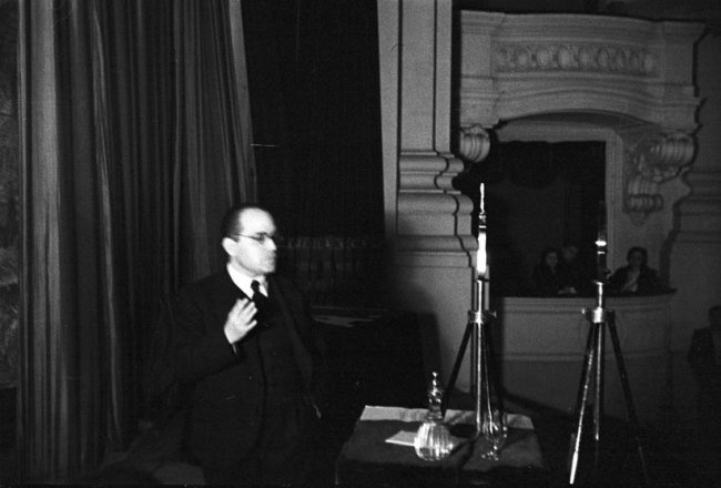 Cardona Rosell durant la intervenció fotografiat per Josep Brangulí Soler --- Marià