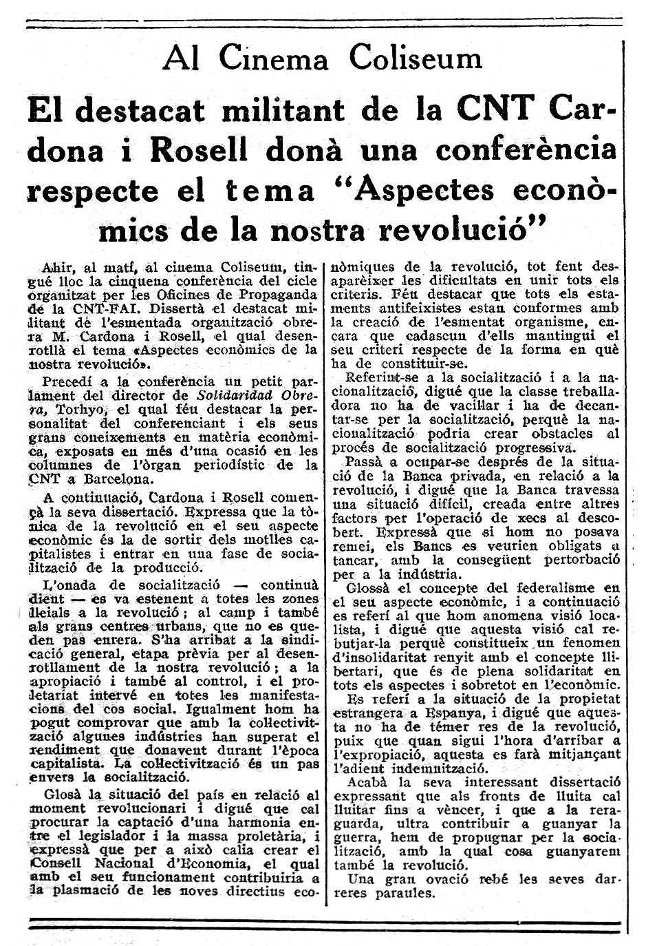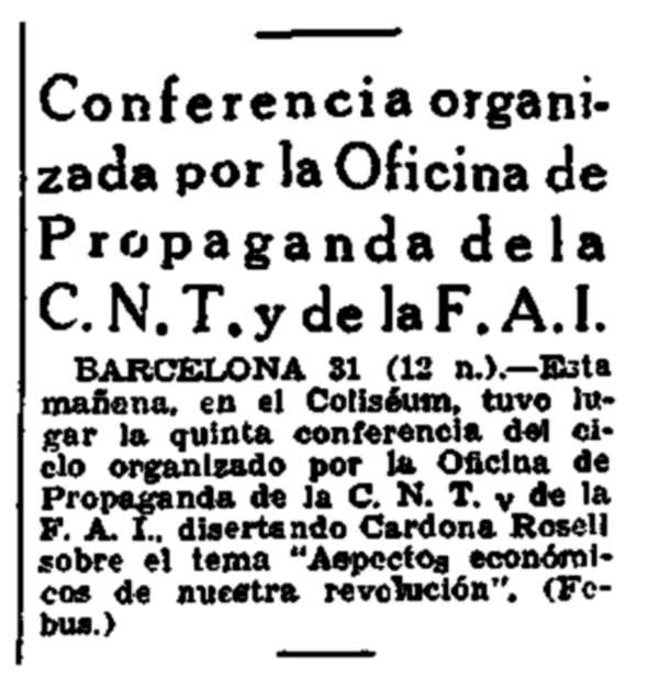 les citades oficines i director de Solidaridad Obrera. Cardona parlà