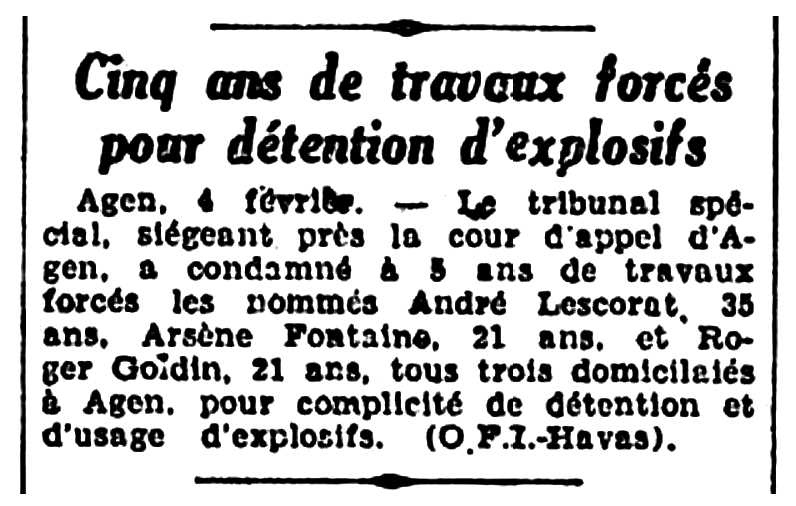 de la condemna d'Arsène Fontaine apareguda en el diari parisenc Journal des
