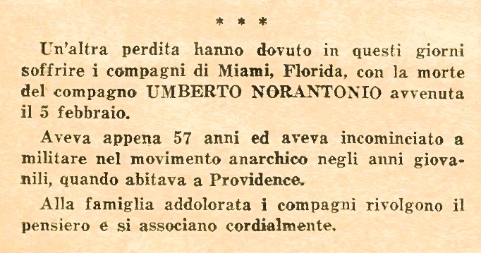 --- Umberto Norantonio (1894-1952) El 23 d'abril de 1894 neix a Itàlia l'anarquista Umberto