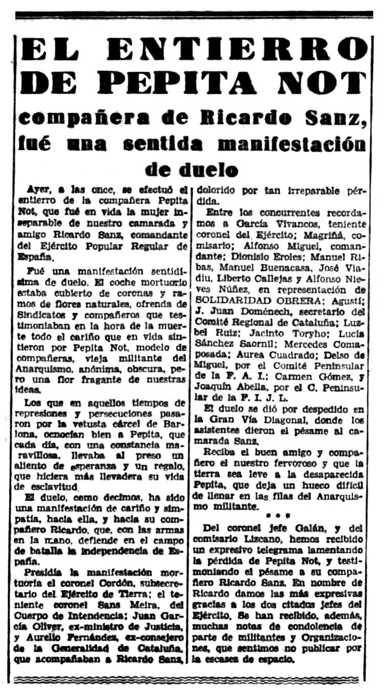 de Pepita Not apareguda en el diari barceloní Solidaridad Obrera del 7