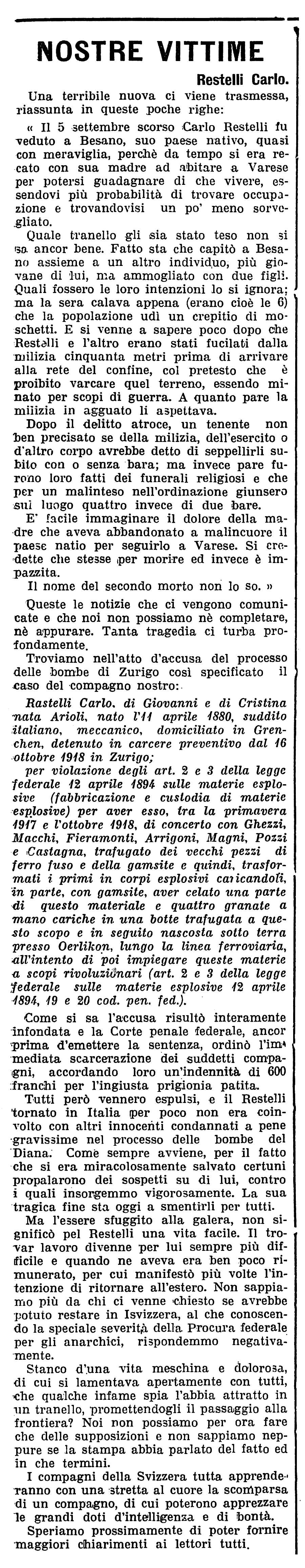 de Carlo Restelli publicada en el periòdic ginebrí Il Risveglio Anarchico del